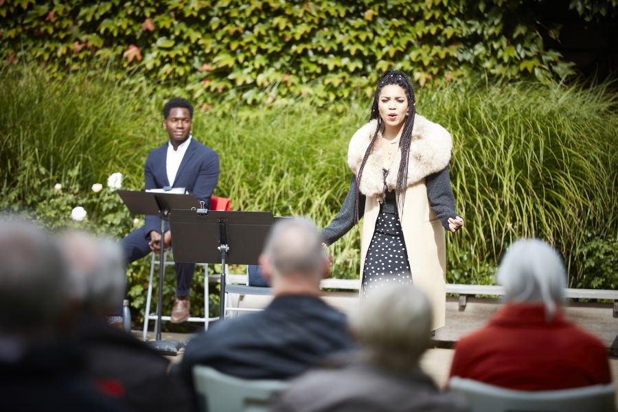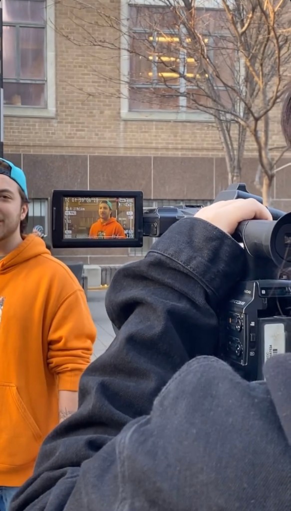 Interviewing Tyler Risman, curator of Gen Z Comedy Club on TMU campus for a feature story to air on TMU Today on March 4, 2024. (Stephanie Beattie)